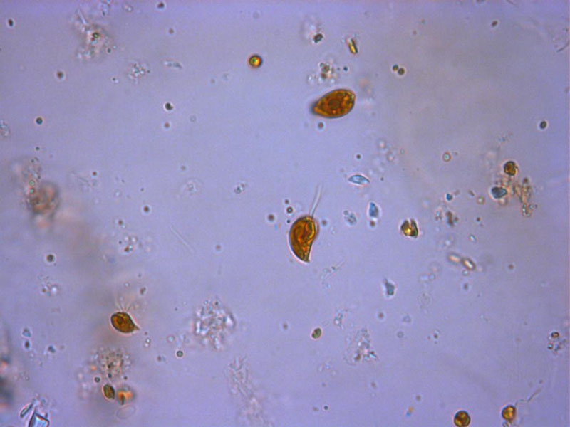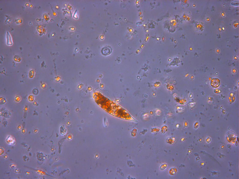 | 038 | Euglena (Euglenophyta) | Euglena spp. | Click to View | oblong cells; 45-70 µm; one or two flagella; can have many chloroplasts | Indian River and Suwannee Sound | Sebastian | DE;GJ;PI;HB;PR;SR | 6 | 10 | Good | acceptable food item for clams | grows well in organically enriched waters | |