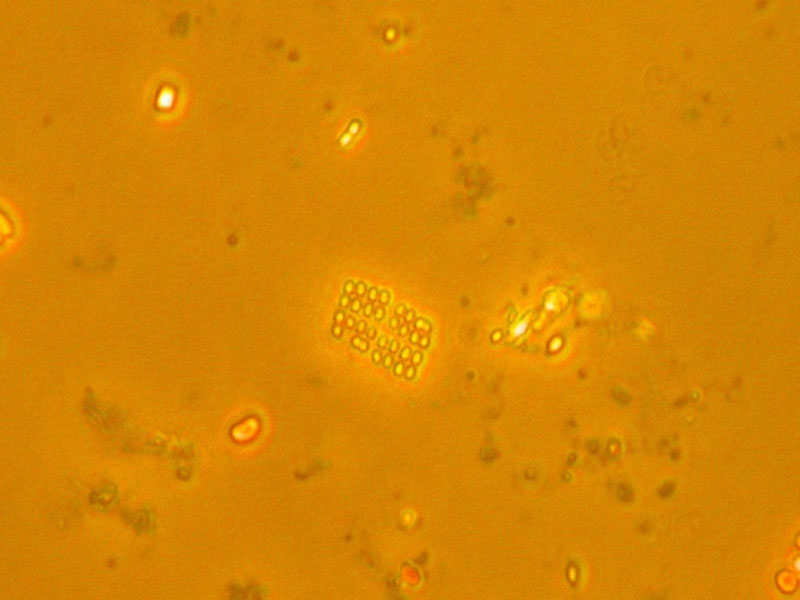 | 007 | Cyanobacteria or Blue-Green Algae (Cyanophyta) | Synechococcus spp. | Click to View | oval-shaped cells; 1-3 µm wide, 5-10 µm long | Indian River | Sebastian | 0 | 27 | Good; Bad | acceptable food item for clams | Some species in this genus have been shown to produce amphidiniols, compounds with hemolytic (lyse red blood cells) properties, but reports from the natural environment are rare. | Very often numerically the most abundant algae. May not be as important in terms of biomass compared to diatoms or dinoflagellates, but can form major blooms. | |