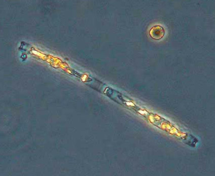 | 019 | Diatoms (Bacillariophyta) | Rhizosolenia setigera | Click to View | cylindrical cells; 4-20 µm diameter; singular or joined in chains ending in needle-like structures | Indian River and Suwannee Sound | Sebastian | DE;GJ;PI;HB;PR;SR | 73 | 23 | Good | acceptable food item for clams | major bloom-former; blooms can occur any time of year, but most common in fall and spring | |