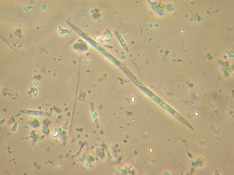 | 015 | Diatoms (Bacillariophyta) | Nitzschia spp. | Click to View | spindle-shaped or rectangular cells, can have flexible, long tapering ends, numerous morphological variations within genus; 5-100 µm long, 5-20 µm wide | Indian River and Suwannee Sound | Sebastian | DE;GJ;PI;HB;PR;SR | 76 | 84 | Good; Bad | acceptable food item for clams | Some species in this genus have been shown to produce amphidiniols, compounds with hemolytic (lyse red blood cells) properties, but reports from the natural environment are rare. | |