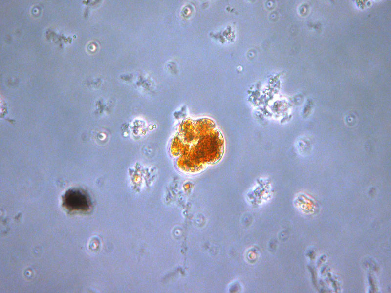| 040 | Green Algae (Chlorophyta) | small spherical green algae | Click to View | spherical or oval-shaped cells; 5 µm in diameter; solitary or clustered (e.g., Chlorella) | Indian River and Suwannee Sound | Sebastian | DE;HB;SR | 2 | 4 | Good | acceptable food item for clams | ||