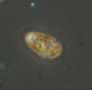 | 033 | Dinoflagellates (Dinophyta) | Pheopolykrikos hartmannii | Click to View | barrel-shaped cells; > 50 µm long | Indian River | Sebastian | 0 | 12 | Good | acceptable food item for clams | |||