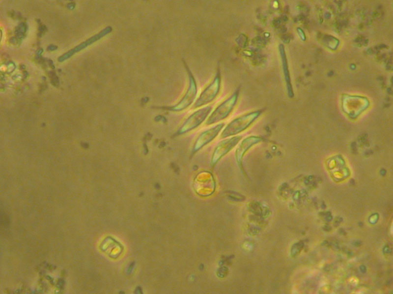 oval-shaped or crescent-shaped cells; approximately 3 µm wide, 20 µm long; appear in colonies of 2-32 cells, joined with long axes parallel, can have spines at ends | Indian River and Suwannee Sound | Sebastian | SR | 0 | 3 | Good | acceptable food item for clams | ||